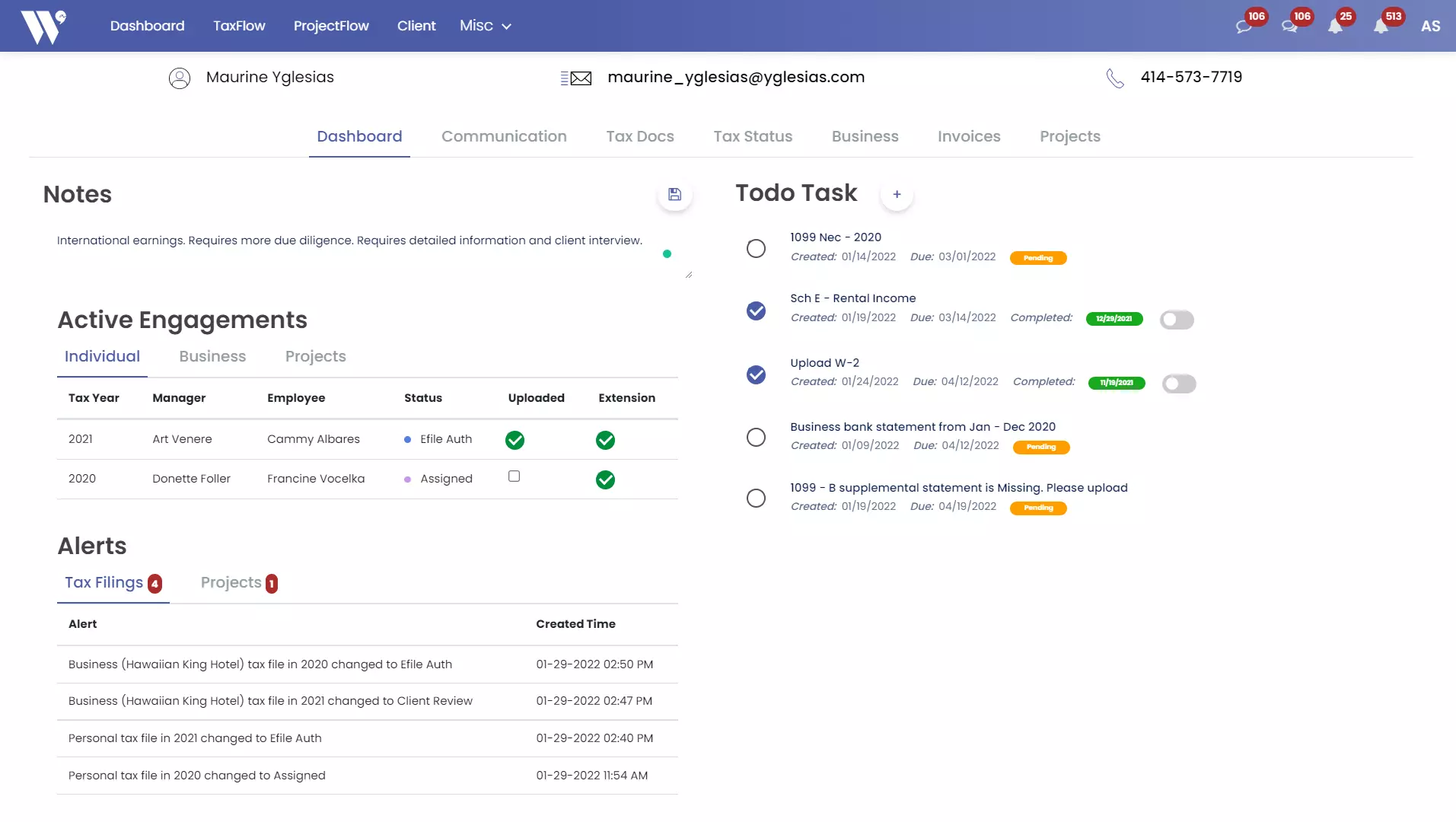 Get StartedNotification and Alerts for client messages, team messages and to-do items